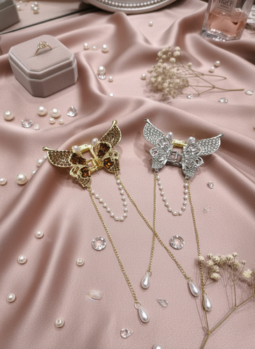 کلیپس جواهری طرح دار گل و پروانه و پاپیون آویز مرواریدی