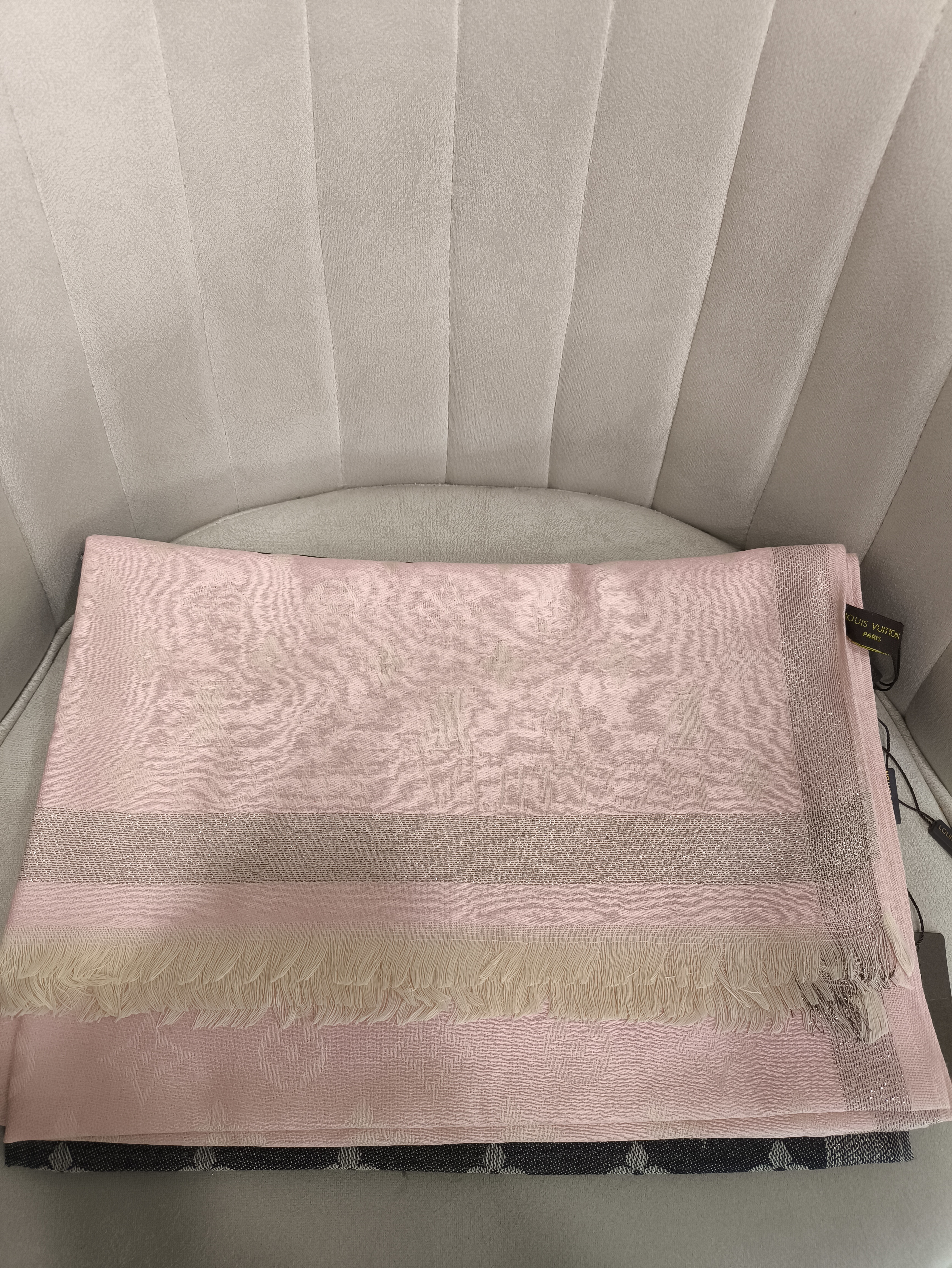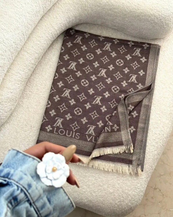 - طراحی لوکس: طرح برند لویی ویتون و بافت لمهای این شال را به یک اکسسوری لاکچری برای تکمیل استایلهای رسمی و نیمهرسمی تبدیل میکند.