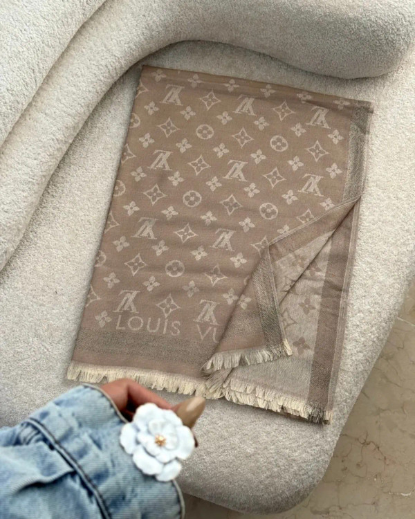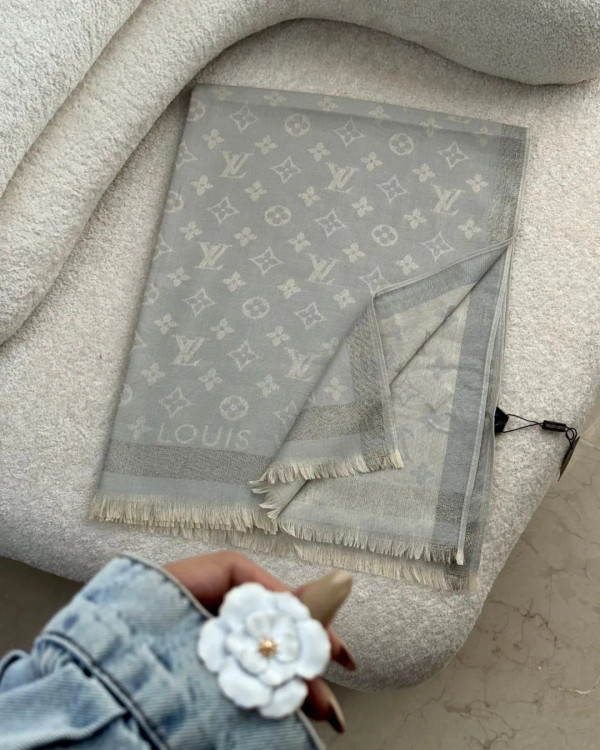 طرح مونوگرام لویی ویتون که روی این شال نقش بسته است جلوهای خاص و برندپوش به استایل شما میبخشد و آن را به یک اکسسوری لوکس تبدیل میکند. ویژگی دو رو بودن این شال به شما این امکان را میدهد که از یک طرف با طرح پررنگتر و از طرف دیگر با طرح کمرنگتر استفاده کنید و تنوع در پوشش خود ایجاد نمایید. نخهای لمه به کار رفته در بافت شال درخشش ملایمی به آن میدهد که زیبایی آن را دوچندان میکند.