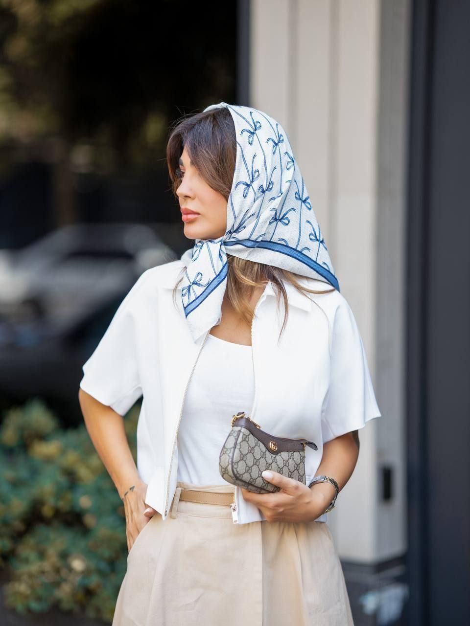 مینی اسکارف نخی پاییزه پاپیونی قواره 80