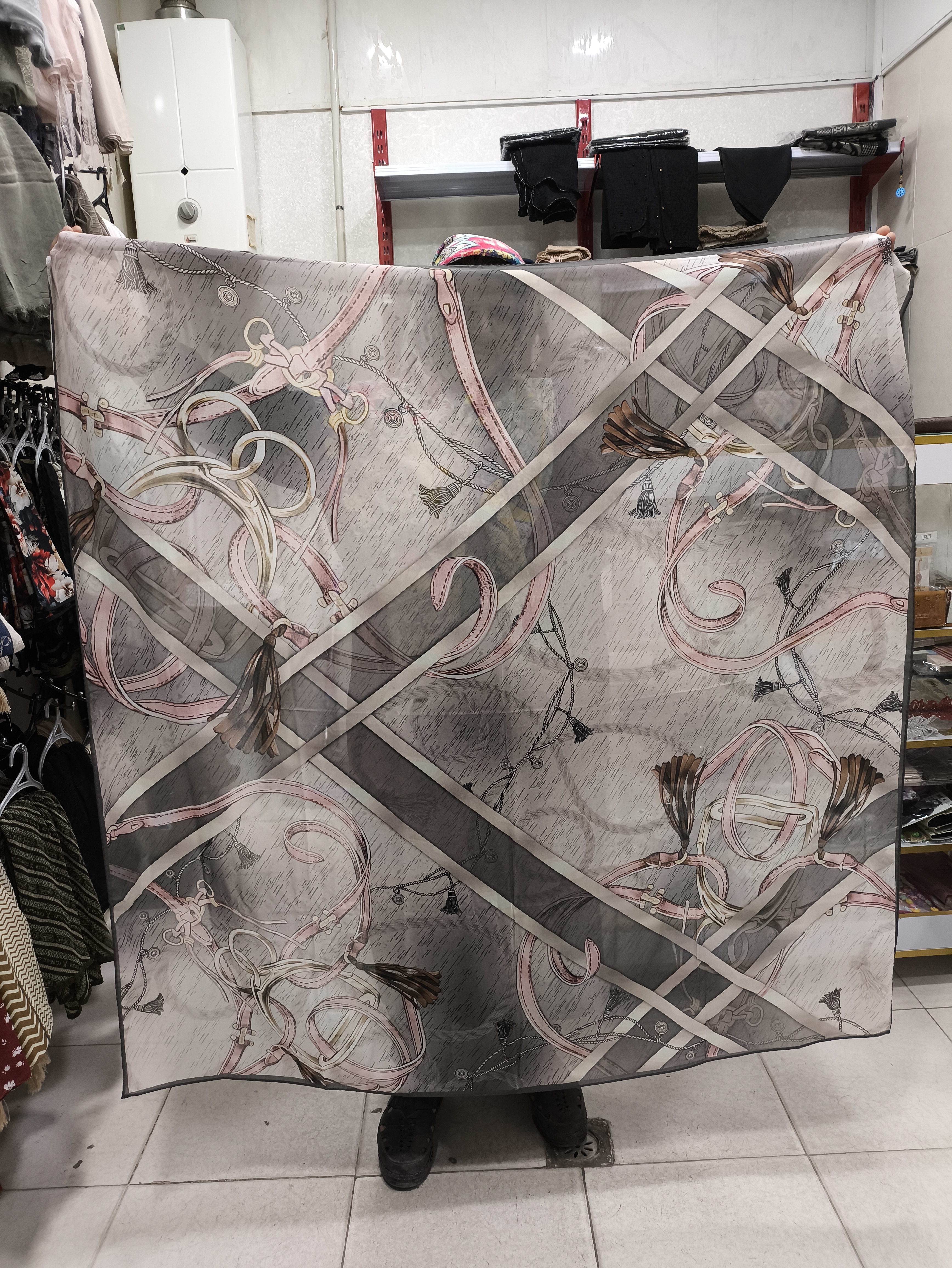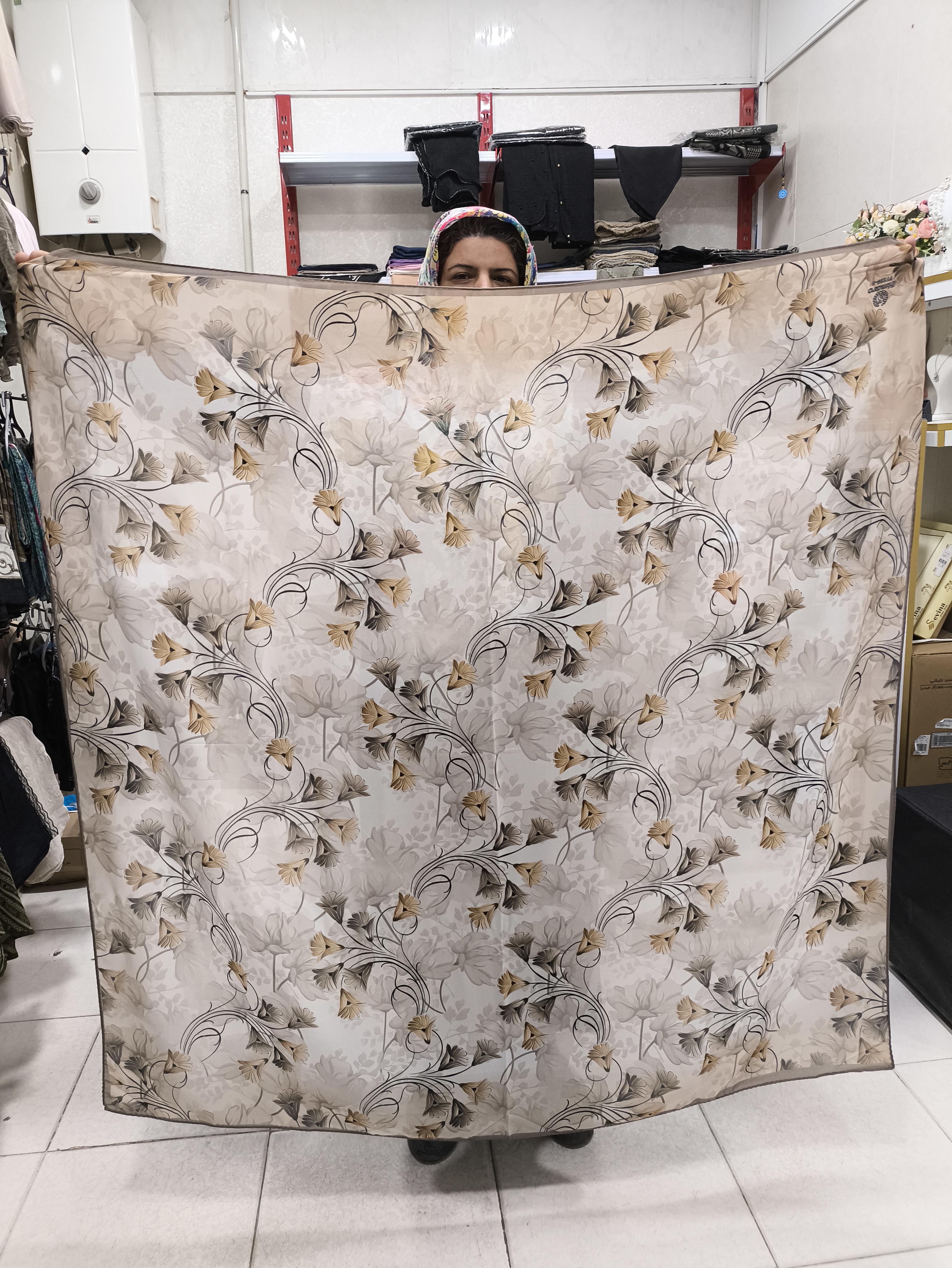 روسری نخ حریر مجلسی طرحدار قواره ۱۴۰ دور دست دوز برند