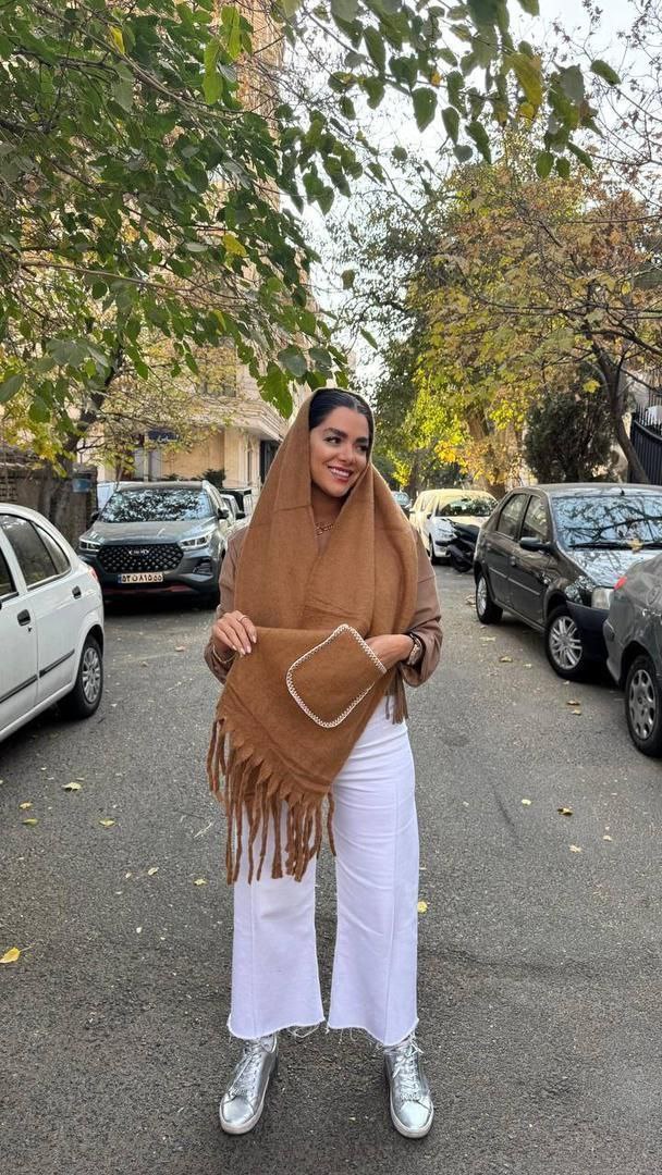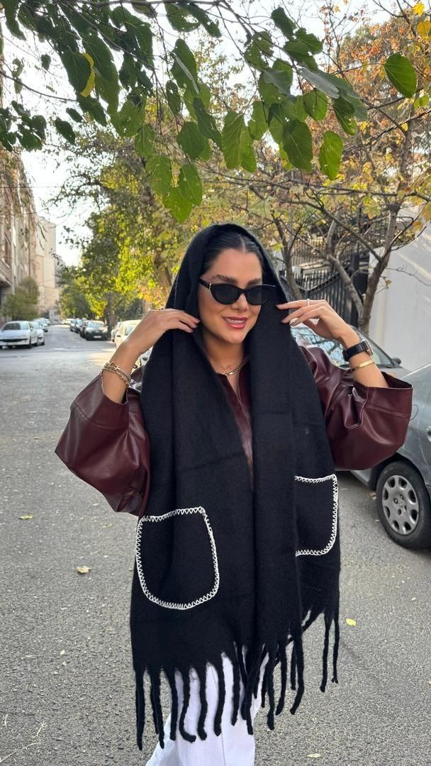 شال موهر پشمی جیب دار تک رنگ گرم زمستانی