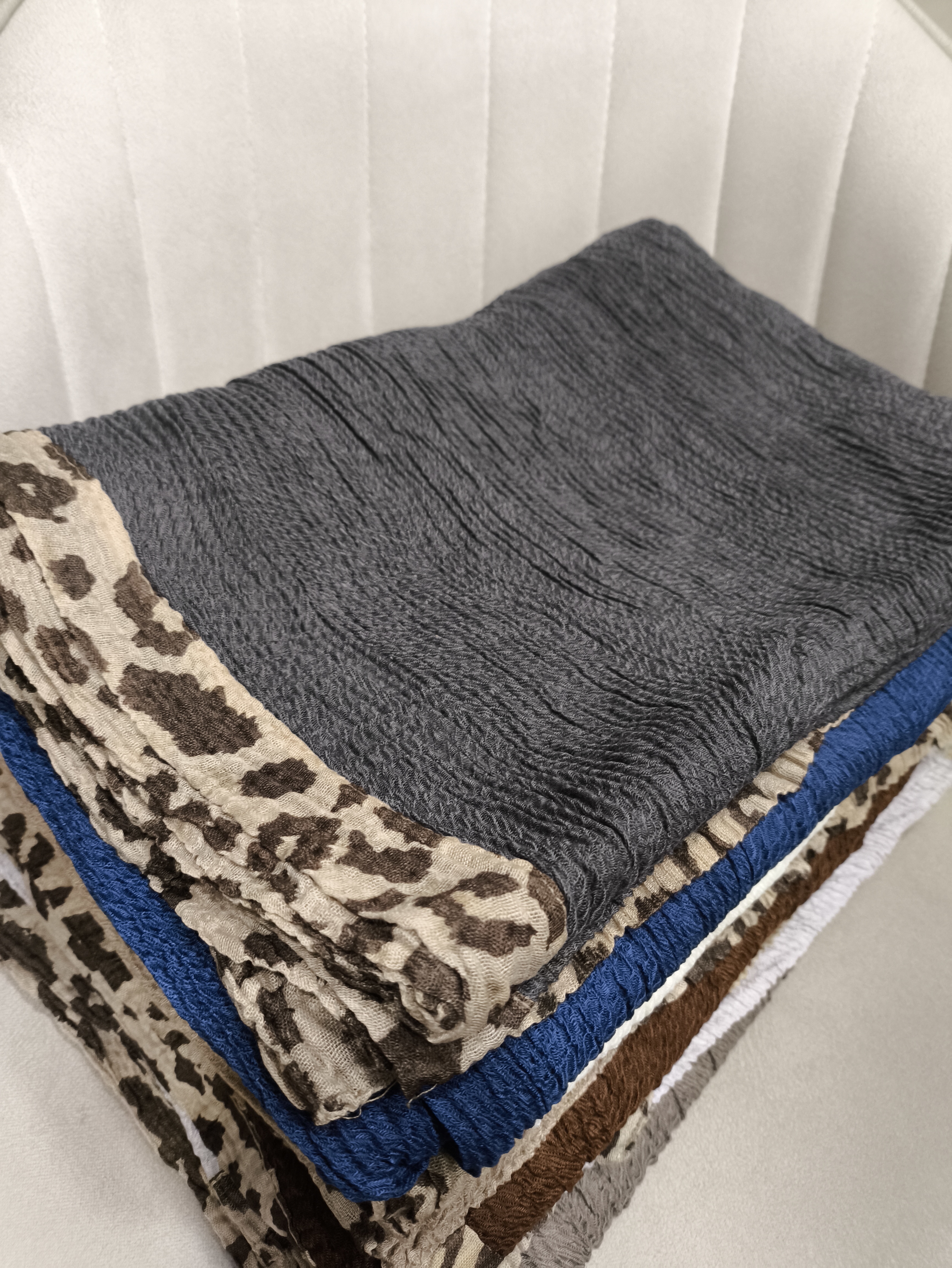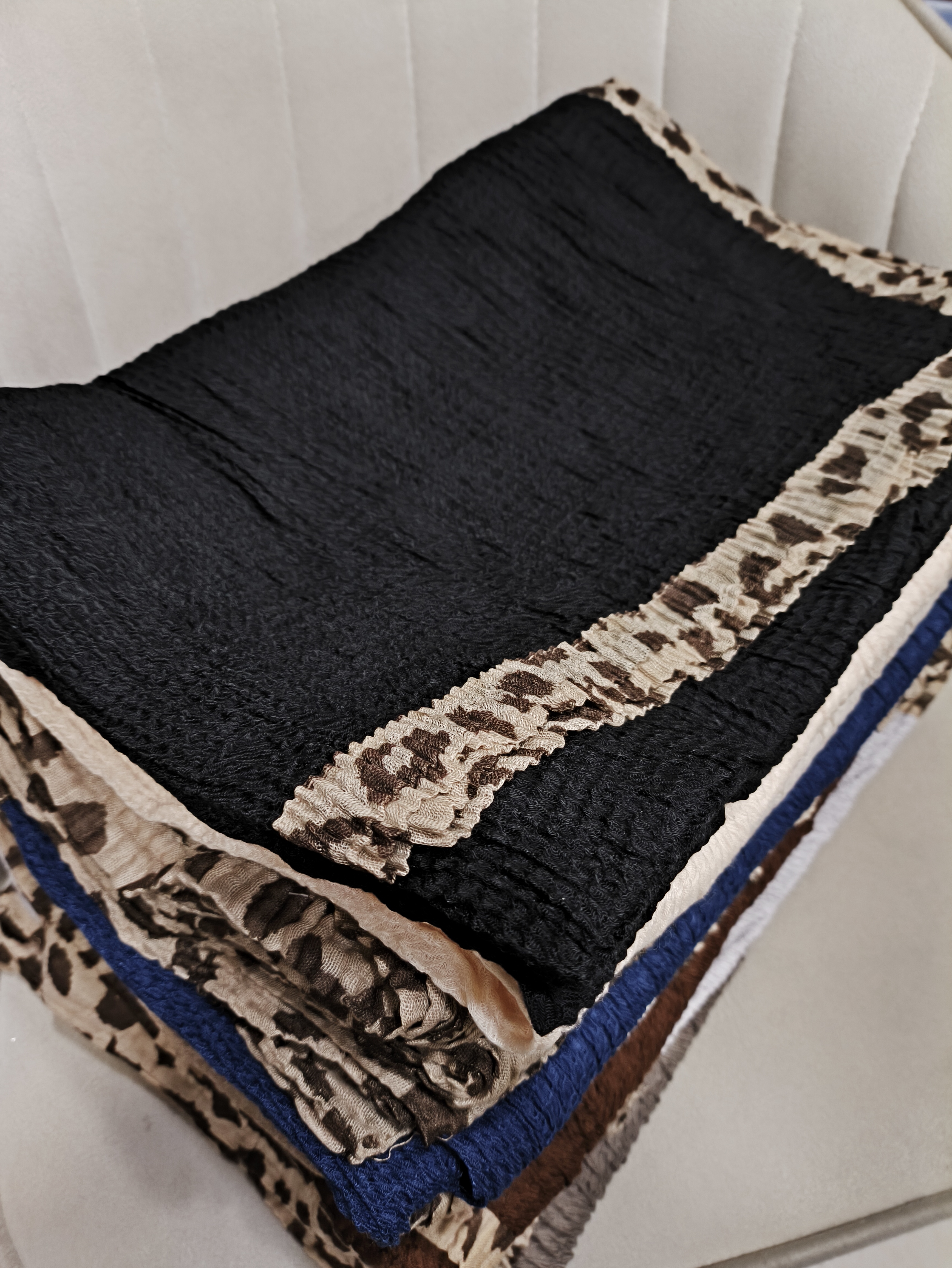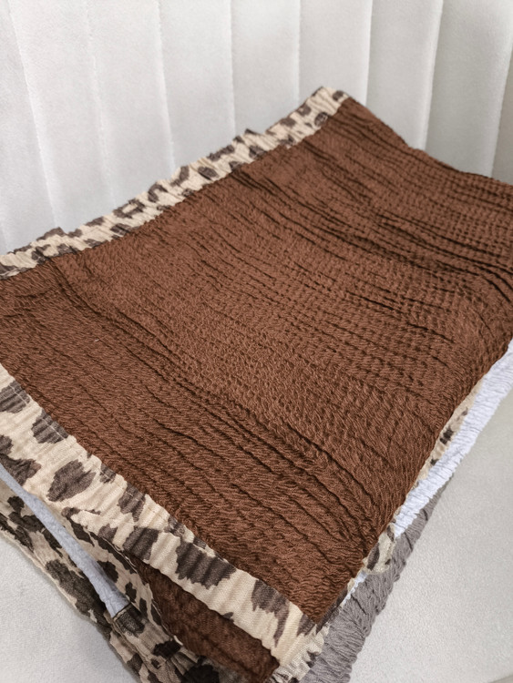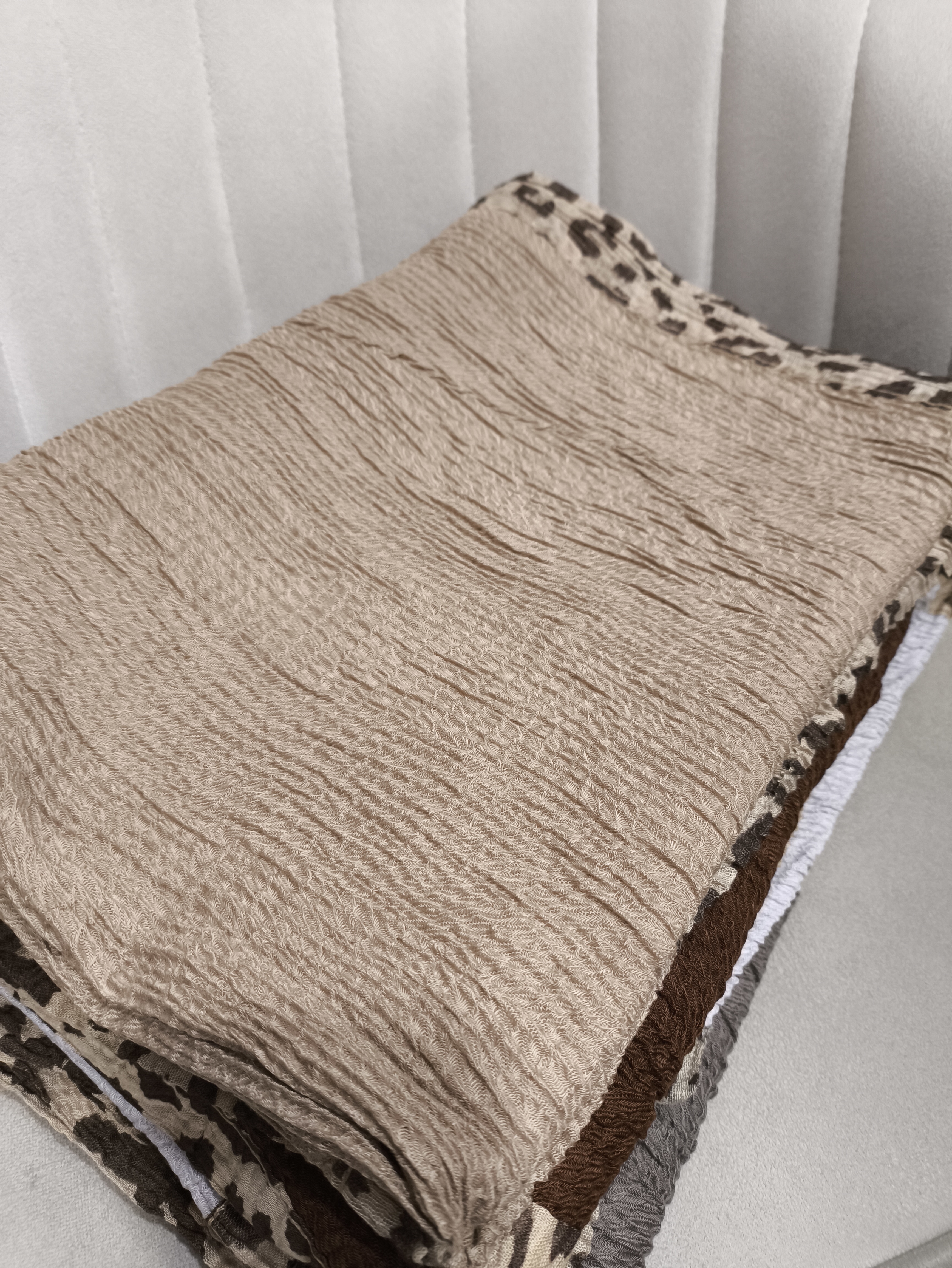 شال نخ پاییزه زنانه دو رو مدل تک رنگ با حاشیه پلنگی شیک