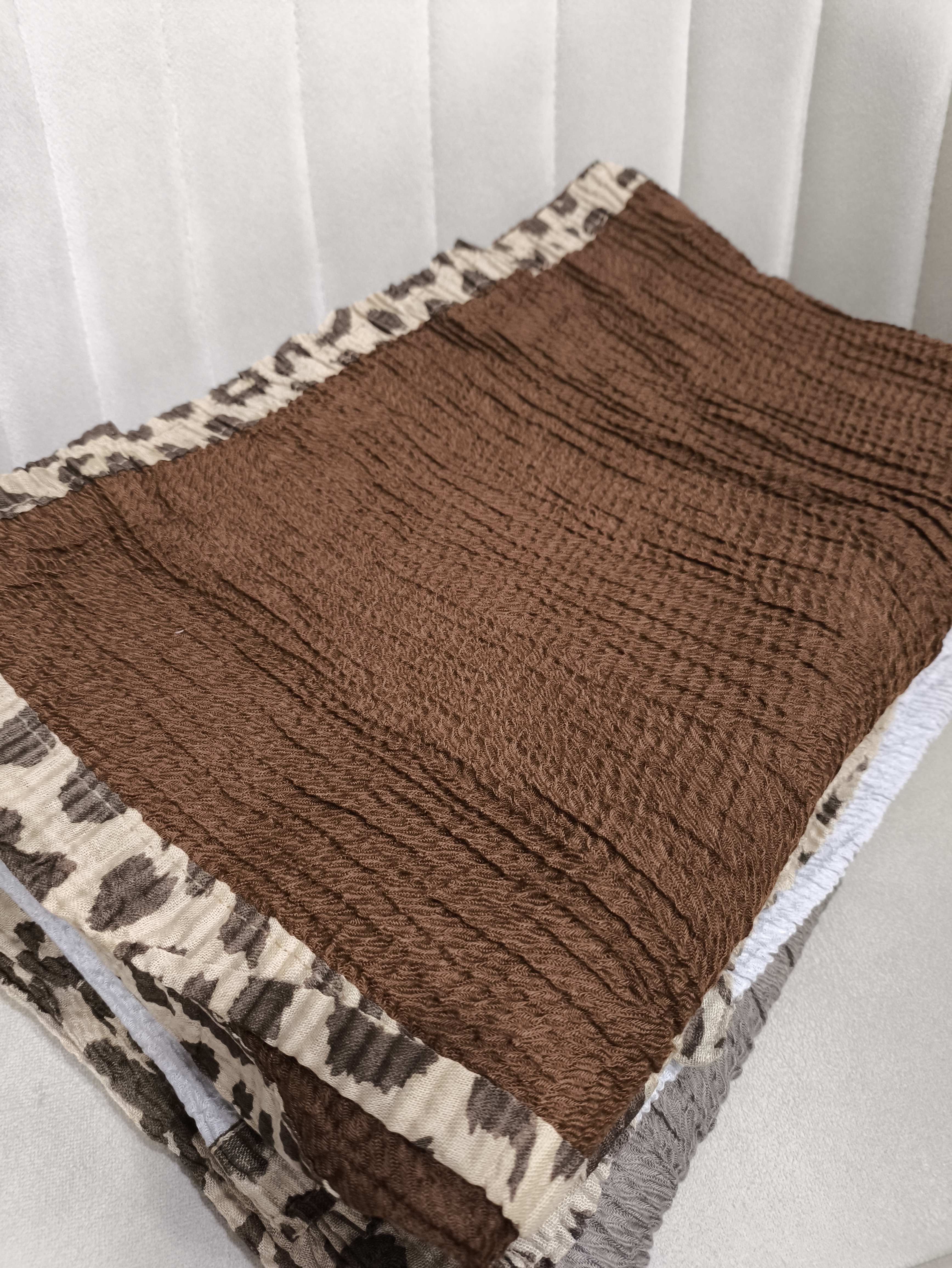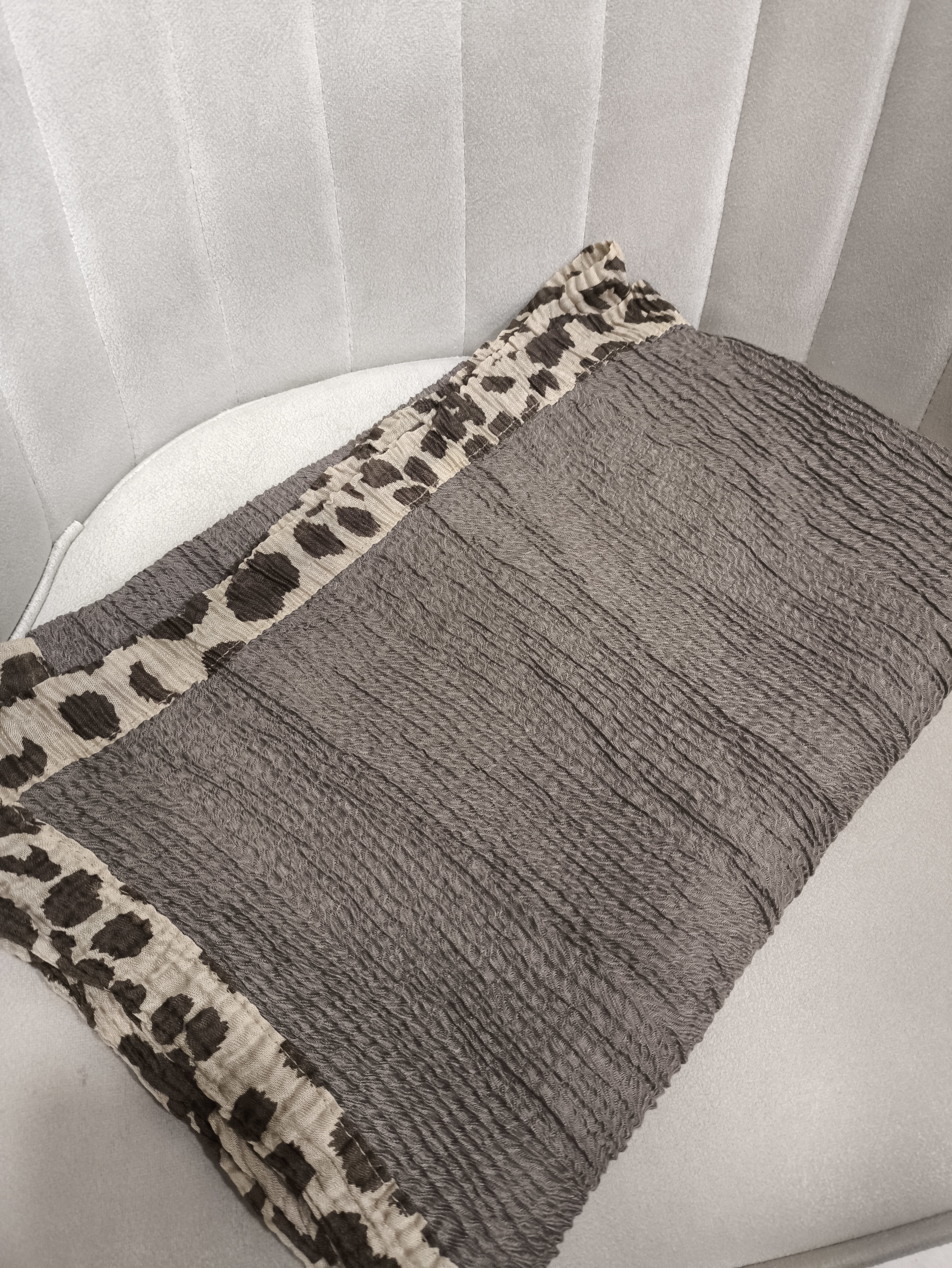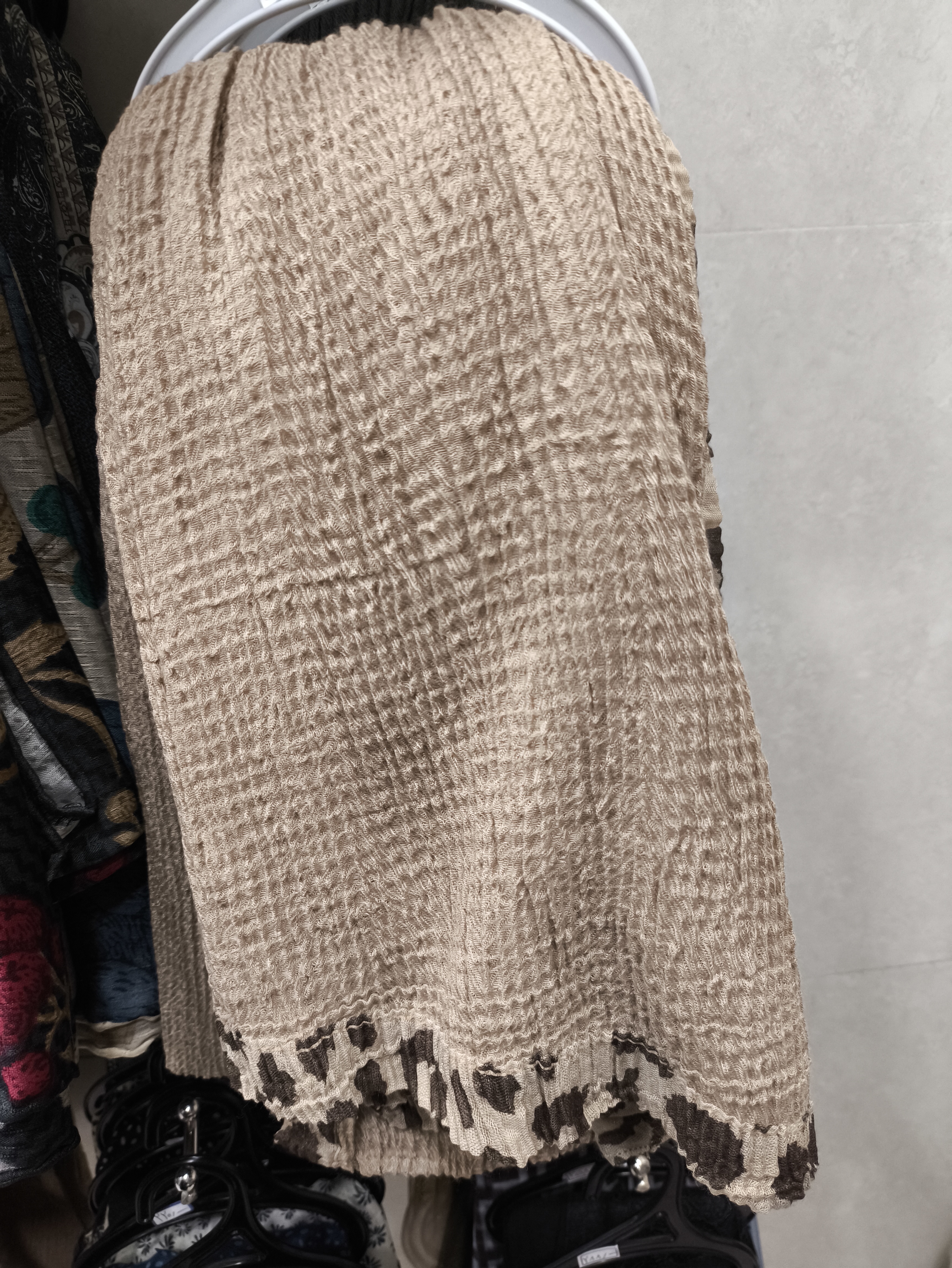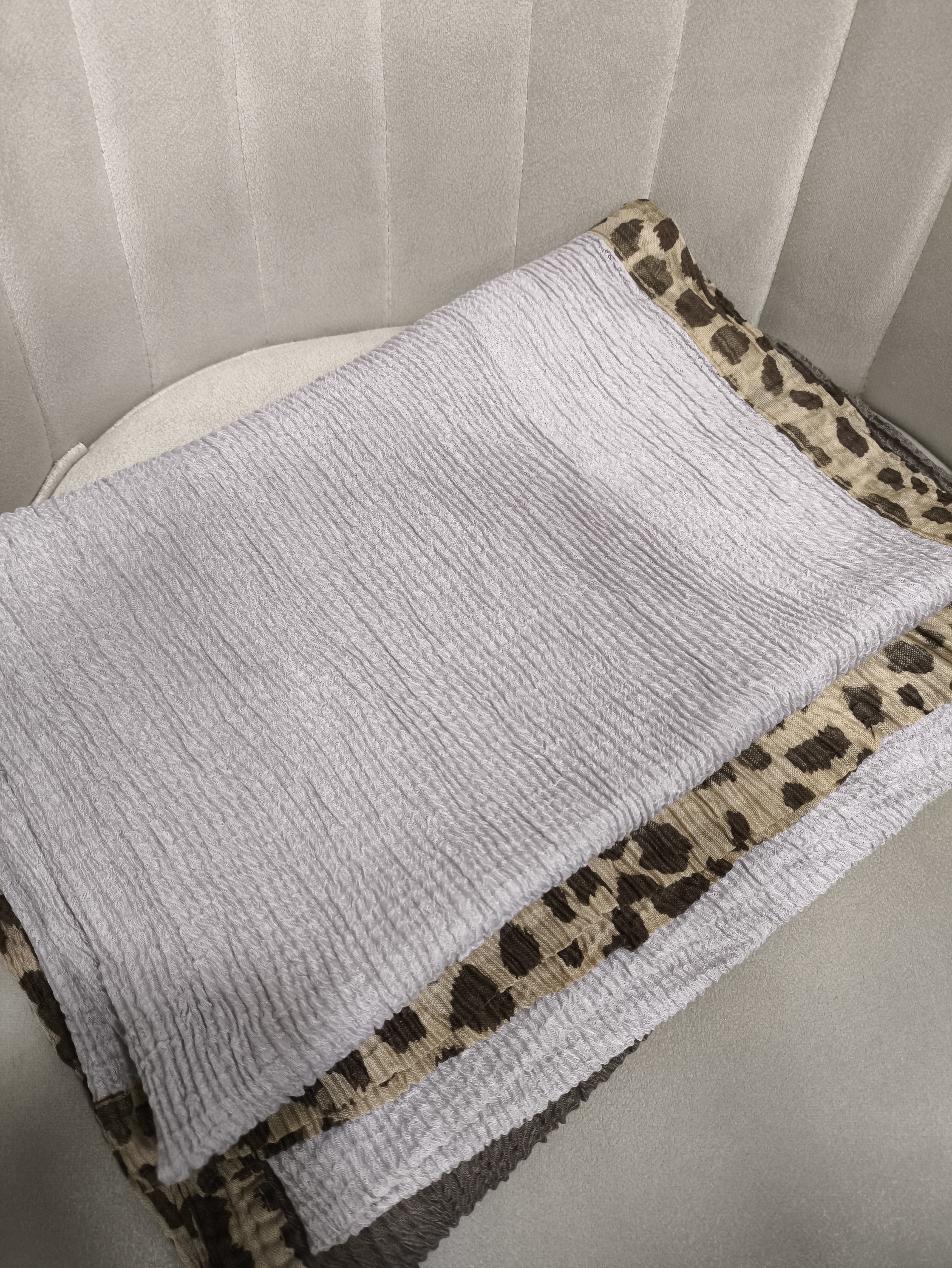 شال نخ پاییزه زنانه دو رو با حاشیه پلنگی: کیفیت بی نظیر و استایل شیک