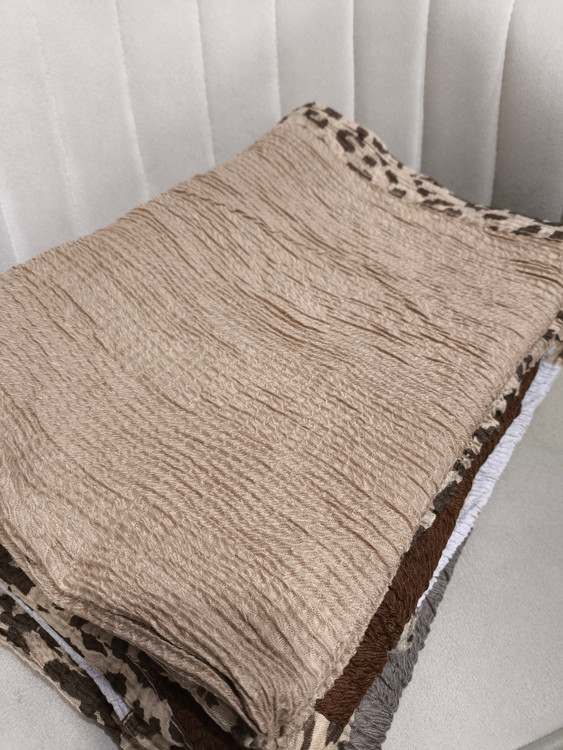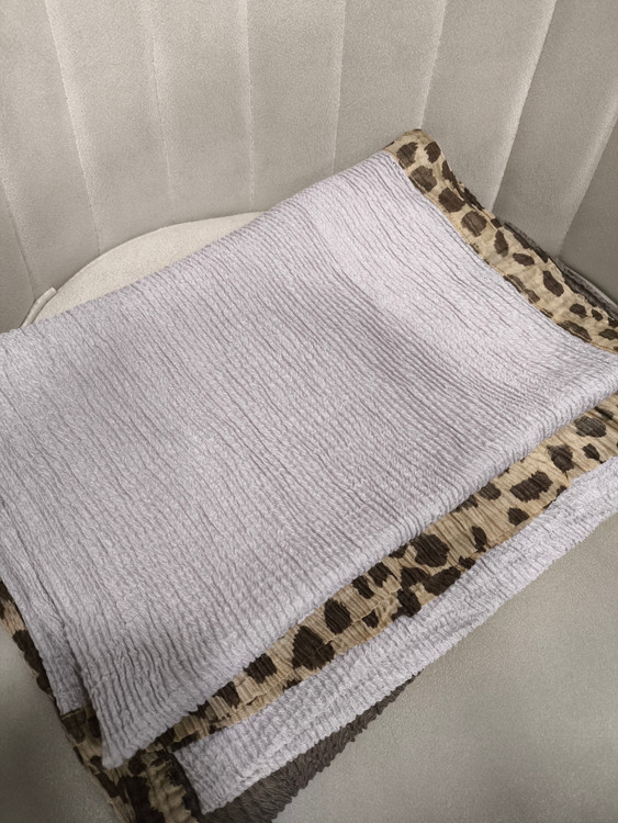 - طراحی دو رو: قابلیت استفاده از دو روی شال باعث میشود تا بتوانید از یک سو شال تک رنگ کلاسیک و از سوی دیگر شال با حاشیه پلنگی ترندی داشته باشید.