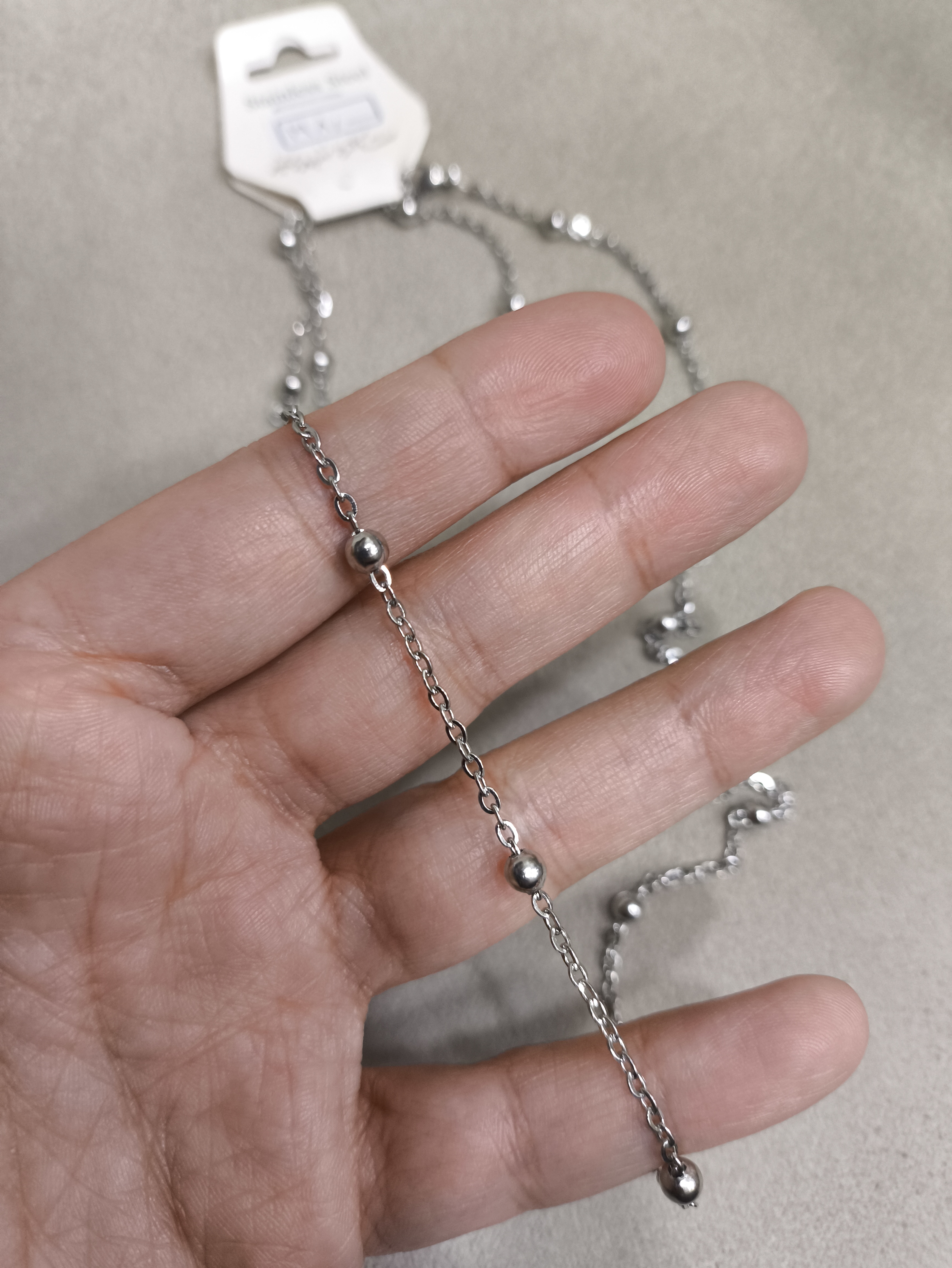 ست گردنبند و دستبند استیل زنجیری توپی مینیمال سیلور زنانه و دخترانه